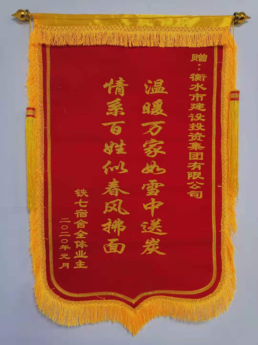2020年1月8日,北京鐵路局第七宿舍居民代表向市建投集團(tuán)贈(zèng)送“情暖萬(wàn)家如雪中送炭,情系百姓似春風(fēng)拂面”錦旗,感謝市建投集團(tuán)心系百姓、排憂(yōu)解難,從根本上解決了他們小區(qū)多年的排污“老大難”問(wèn)題。集團(tuán)總經(jīng)理宋立民、副董事長(zhǎng)張玉高代表集團(tuán)接受了錦旗。