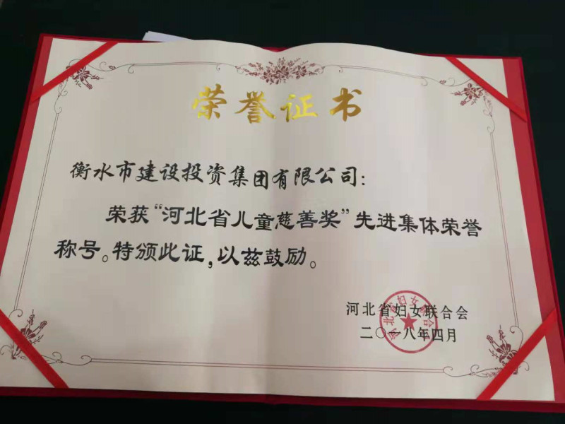 日前,河北省婦女聯(lián)合會授予衡水市建投投資集團(tuán)有限公司“河北省兒童慈善獎”先進(jìn)集體榮譽(yù)稱號。以表彰市建投集團(tuán)在勇于承擔(dān)社會責(zé)任,積極支持我省婦女兒童事業(yè)方面作出的貢獻(xiàn)。