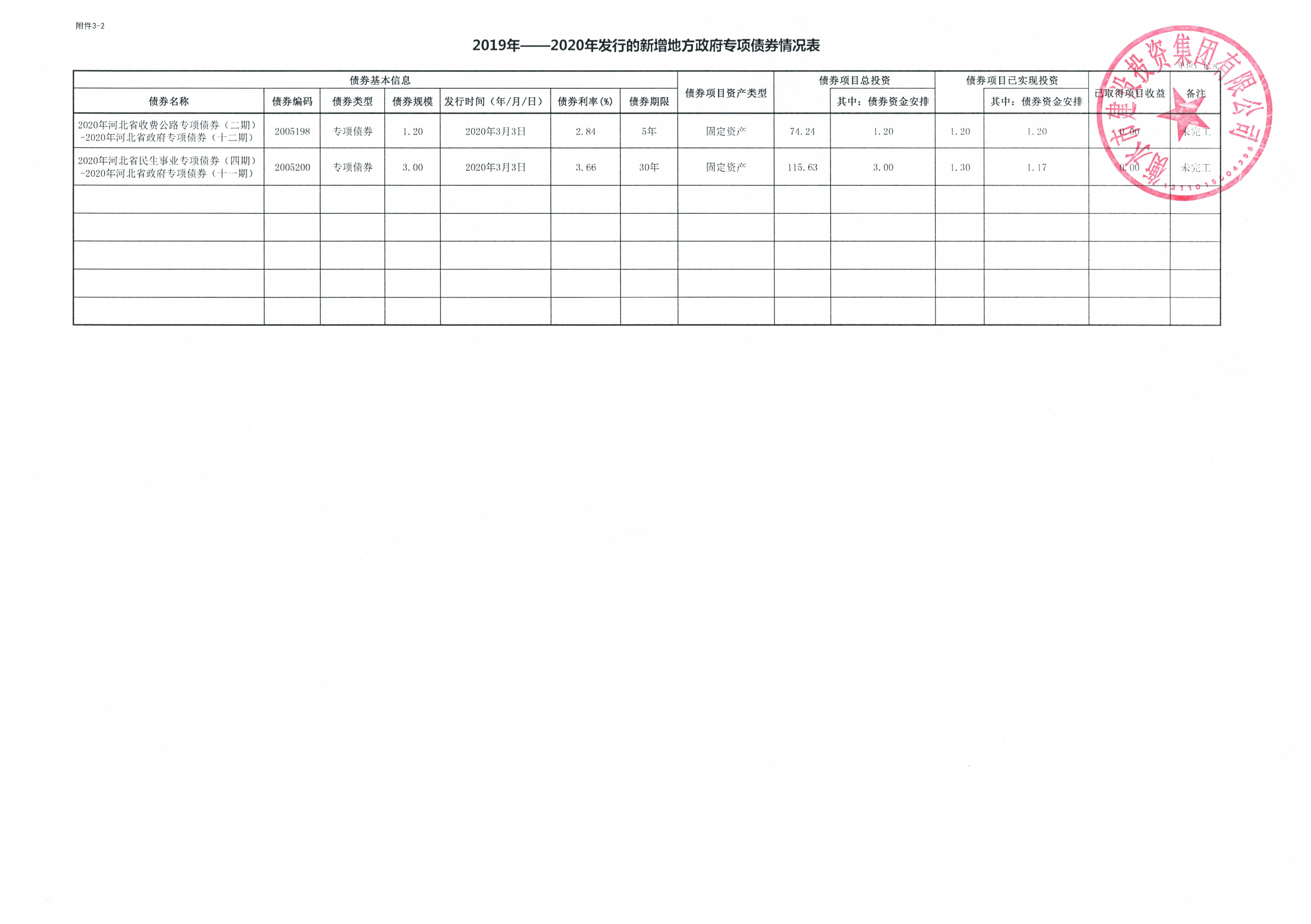 2019-2020年發(fā)行的新增地方政府債券情況信息公開