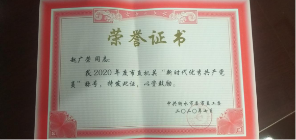 趙廣榮同志榮獲市直“新時(shí)代優(yōu)秀共產(chǎn)黨員”榮譽(yù)稱(chēng)號(hào)